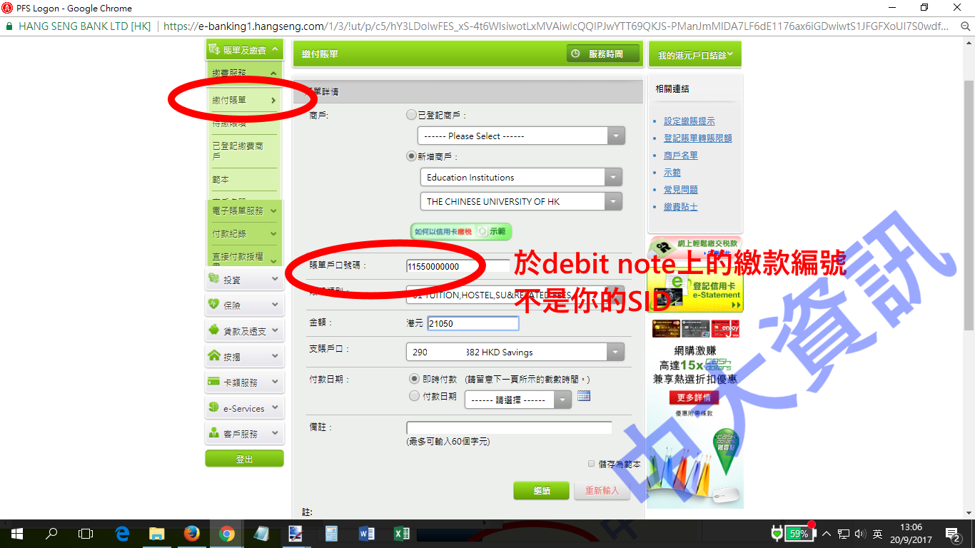 | 記得選擇正確的扣帳戶口,提交之前核對 |